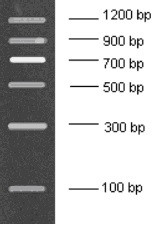 Product Description: 9 DNA fragments: 100, 250, 500, 750, 1000, 1500, 2000, 3000, 5000bp: 9 DNA fragments: 100, 250, 500, 750, 1000, 1500, 2000, 3000, 5000bp
