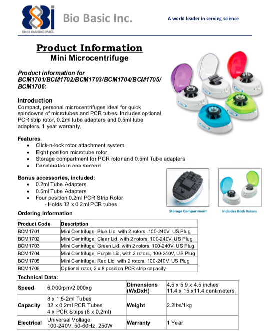 Máy li tâm mini- Mini Centrifuge, hãng BioBasic- Canada