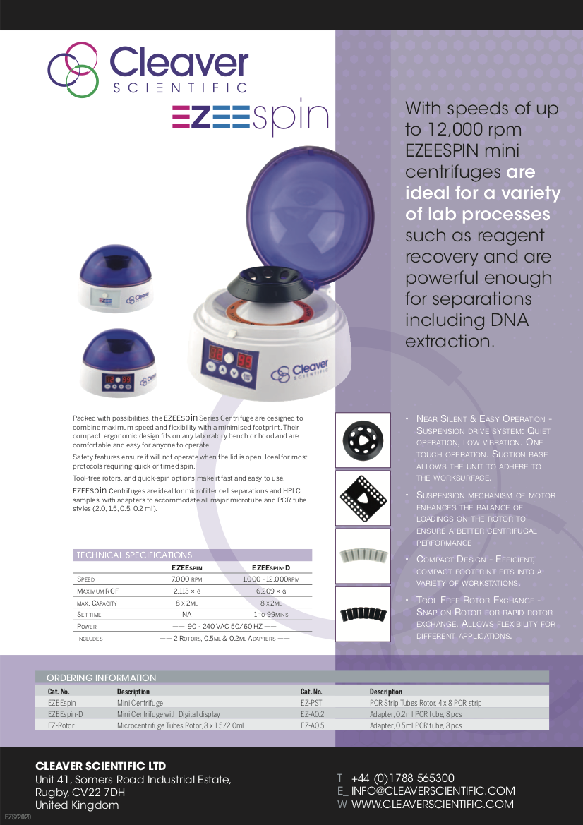 Máy ly tâm MINI EZEE. (EZEEspin centrifuges), Hãng: Cleaver Scientific