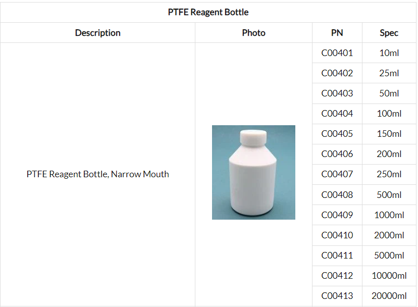 (PTFE Reagent Bottle, Narrow Mouth)