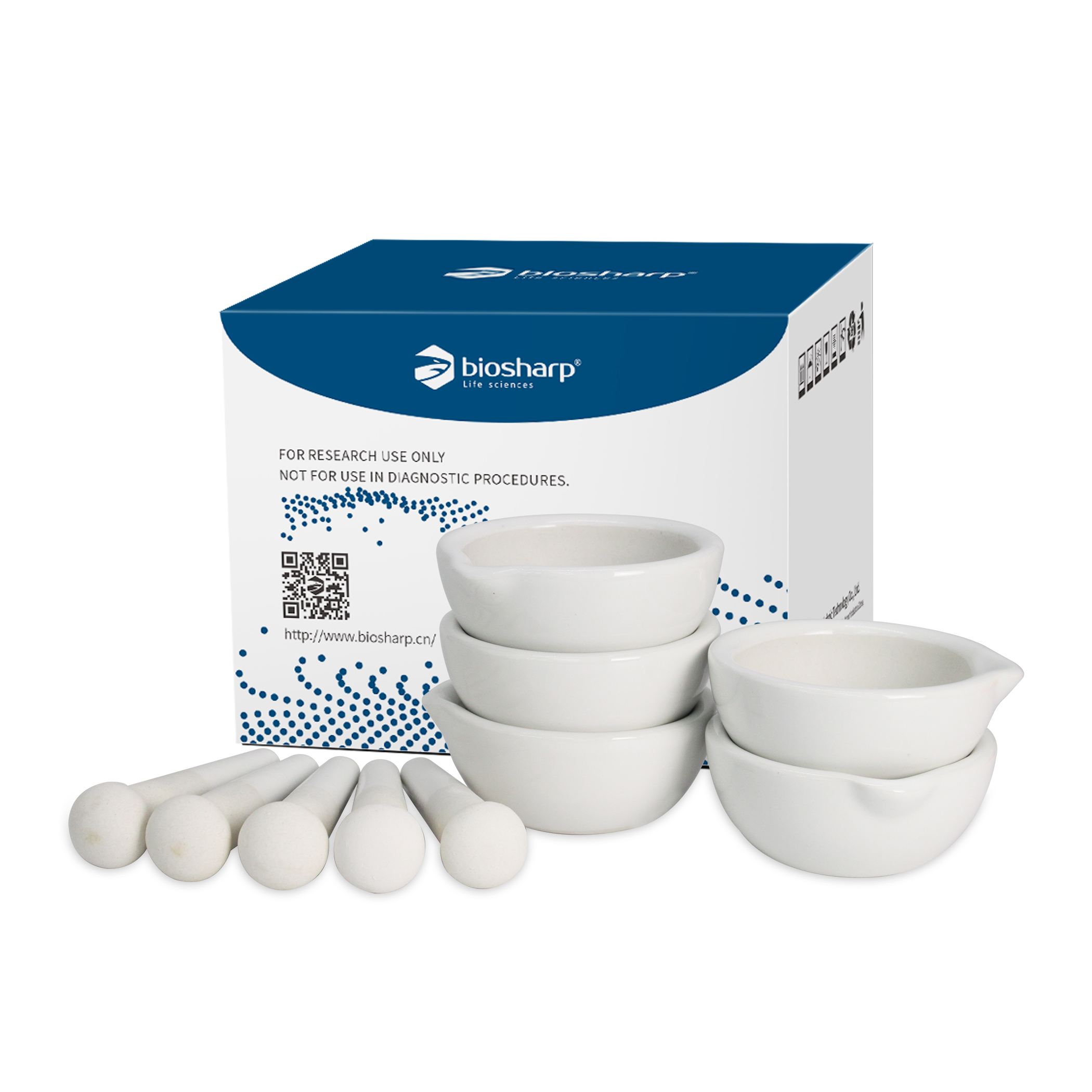 Cối chày sứ có mỏ (Ceramic Mortar), nghiền mẫu thí nghiệm, hãng Biosharp