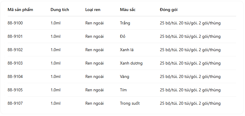 Mã sản phẩm: 88-9100, 88-9101, 88-9102, 88-9103, 88-9104, 88-9105, 88-9107