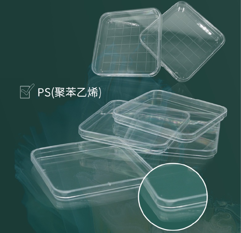 - Scope of application: Disposable plastic culture square dish, suitable for microbiology test, as well as suspension culture or plant cell culture.