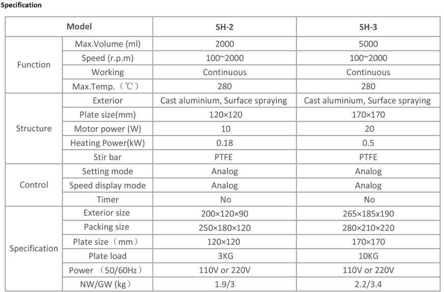 Dung tích khuấy: 2 lít (SH-2) và 5 lít (SH-3)
