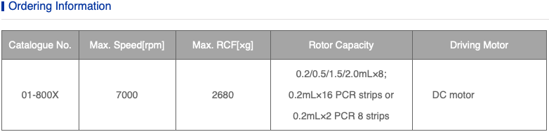 - Bao gồm rôto cho ống ly tâm siêu nhỏ, ống PCR và dải 8 strip PCR